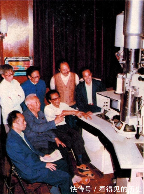 湖南有色行业科技力量雄厚,拥有一支专业门类齐全、技术素质好的科研队伍和一批著名的有色金属矿冶专家、学者。图为中南工业大学(现中南大学)黄培云教授(左二)、左铁庸教授(左三)和材料科学与工程学科的部分教授正在研究新材料的微区结构。